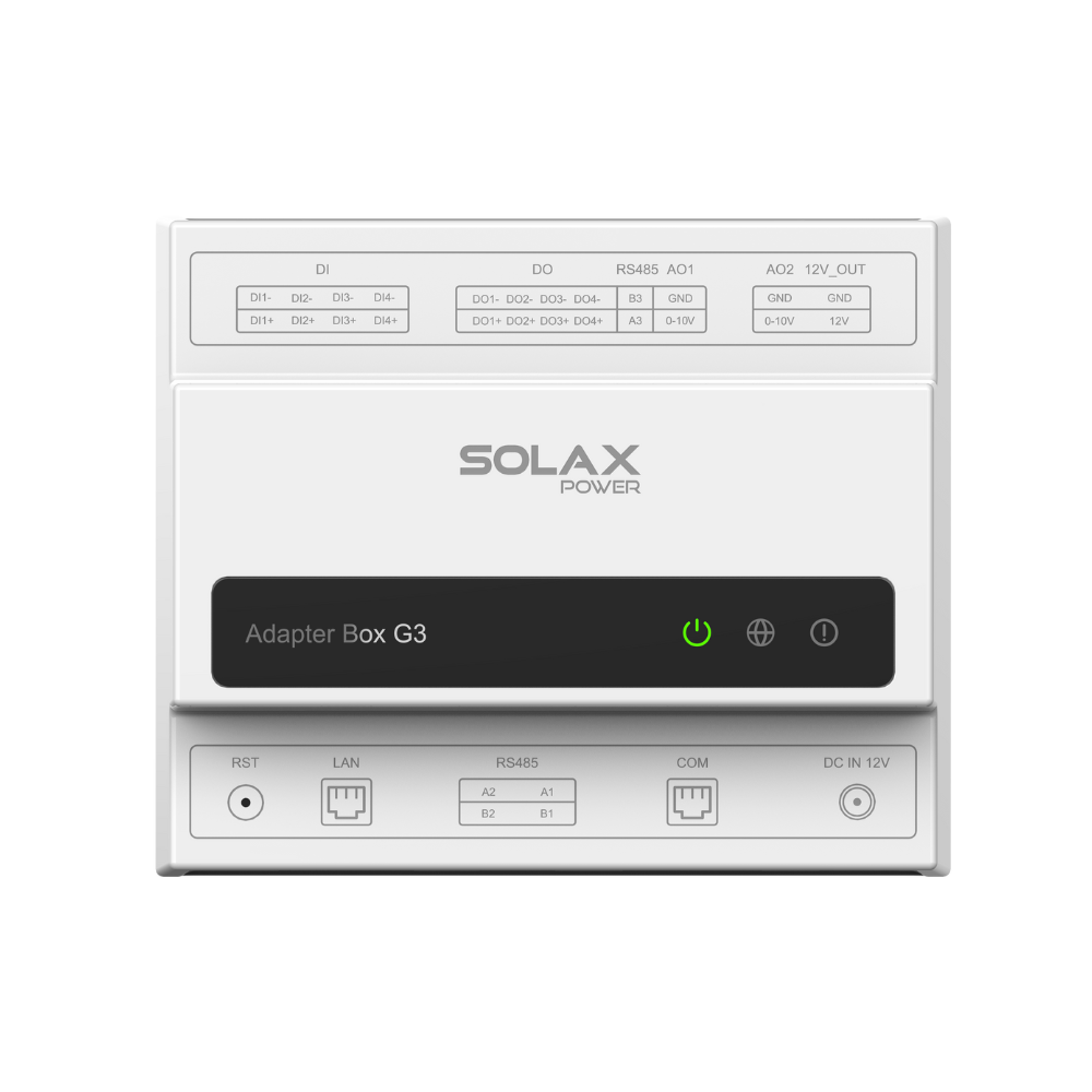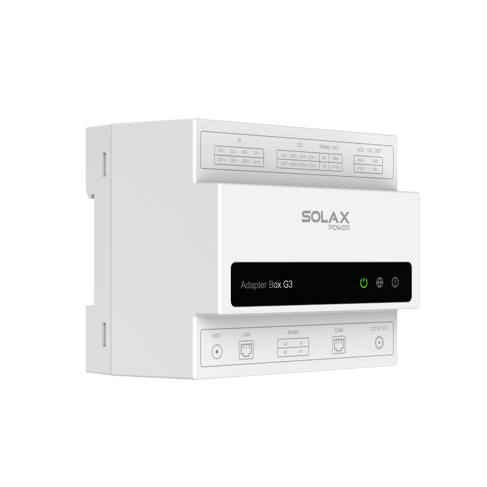 Το SolaX Adapter BoX G3 είναι ένας συμπαγής έξυπνος διαχειριστής φορτίου με σχεδιασμό ράγας DIN για εύκολη εγκατάσταση. Υποστηρίζει συνδεσιμότητα WiFi και LAN, πρόσβαση εξωτερικού ελέγχου και μια καθαρή διάταξη κατάλληλη για χρήση.